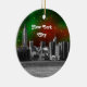 NYC Skyline Etched ESB Red and Green Starry Xmas Ceramic Ornament