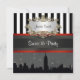 Customisable Invitations and accessories with an iconic silhouette view of the New York City featuring the Emp St Building the Chrysler Building against a dark starry sky. They also feature a black and white striped pattern, a red and black ribbon and a white gradient label with your choice of a silver or gold look frame.