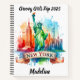 A vibrant illustration showcases New York City, blending the Statue of Liberty with iconic skyscrapers like the Empire State Building, capturing the essence of this dynamic metropolis.