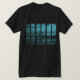 The New York City skyline framed in the initials, 'NYC', light cyan print on a comfortable dark Bella Canvas tee. Designed by Michael Robin Cooke.