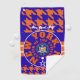 Golf Towel blue with orange hounds-tooth design and with blue, orange and white, concentric-circles design and "NEW YORK, NY CENTER OF THE UNIVERSE" and the Great Seal of New York in the centre and "New York, NY" at the top in script with Y-NOT-ME. This design is a shout-out to the city that never sleeps, New York City, New York.