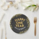 Personalise these cute holiday party plates with Happy One Year for your little one's birthday. Perfect New Years Eve First Birthday decoration for baby's first birthday Gold Glitter Design. Template for NYE 1st Birthday plates with editable text to use this holiday for a special first birthday memory! Check this collection for Unique matching gold glitter party decorations for every occasion.