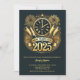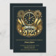 Personalised NYE 2025 Invitation Electronic New Years Eve Party. Digital Mobile Invitation in Black and Golden Colours with Fireworks, Champaign and Clicking Wall Clock Illustration.