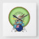 A funny cartoon illustration of a kiwi bird, playing drums, backed by a kiwi fruit. A design for drummers, or anyone who loves NZ music.