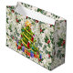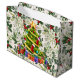 A Beautiful Decorated Large Gift Bag Patterned In Christmas Florals And A Center Tree