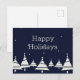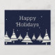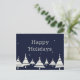 Modern Christmas design featuring off-white minimalist Christmas trees on a deep navy blue background, creating a chic and contemporary holiday aesthetic.