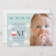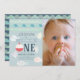 This cute and modern "o-fish-ally one" boy's 1st birthday photo invitation features a school of fish and a float buoy under the waves. The reverse side features a navy blue background with wave patterns. Personalise for your needs. You can find more matching products at my store.