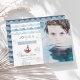 This cute and modern "o-fish-ally one" boy's birthday photo invitation features a school of fish and a float buoy under the waves. The reverse side features a navy blue background with wave patterns. Personalise for your needs. You can find more matching products at my store.