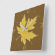 Digitally enhanced image of an oak leaf in camel tan and beige on a medium chocolate brown background
