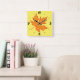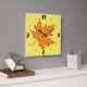 Digitally enhanced image of an oak leaf in rich shades of orange on a mustard gold background