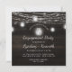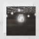 Oak Ridge Rustic Dark Brown Barn Wood, Sparkling Mason Jars, and Glowing String Lights Design with Twinkling strands of dangling lights and jars on a deep rich wood texture with white accents. With Modern Typography Script Fonts. A rustic elegant country farmhouse style design - Personalised Wedding Engagement Party Square Invitations!