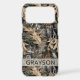 Customize this oak tree camouflage iPhone 17 pro max case with your name in a trendy modern CAP font in gray on opaque cream. It's masculine and perfect for your favorite military, hunting, country or outdoorsman!