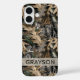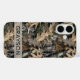 Customize this oak tree camouflage iPhone 16 case with your name in a trendy modern CAP font in gray on opaque cream. It's masculine and perfect for your favorite military, hunting, country or outdoorsman!