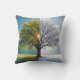 A striking depiction captures an oak tree showcasing two contrasting seasons, winter and summer