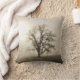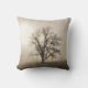 A hauntingly beautiful decor pillow featuring an oak tree in the fog with a parchment texture.