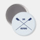 Fun magnet for a keen rower or sculler. "Oar inspiring", awe-inspiring pun, with crossed oars in navy on a light blue background.