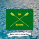 Humourous postcard with a pun for a keen rower or sculler. "Oar inspiring", awe inspiring, crossed oars and text in a golden colour on a green background.