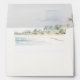 OASIS, wedding invitation envelope. Features, coastal beach watercolor scene lining and return address template on back flap.