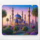 Mouse pad of a middle eastern castle with minarets in a lush desert oasis, in the style of a thousand and one arabian nights. The image was made with Leonardo.ai.