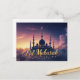 "Eid Mubarak" with a beautiful mosque as a background for a personal greeting.
