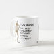 Text on mug: "You again. Do I have 'Welcome' tattooed across my chest?" The perfect mug when you're having one of *those* days. Let people know in advance your state of mind. Or, use it on a good day just for the chuckles it produces.
