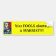 Anti Obama bumper sticker with Obama HOPE picture and text "You FOOLS elected a MARXIST!!!"