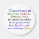 Obama a peacenik socialist? Just a Republican myth. He's ramped up wars and failed to regulate Wall Street, and Obamacare didn't go far enough to help all Americans. So it's ironic that the GOP, the party of Christian conservative values, fails to realise what a progressive liberal Jesus Christ was: fed the hungry, turned the other cheek, fought the money-changers. And OMG, He was a "foreigner," too!