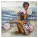 Original Painting of two girls playing with pink balloons on Coney Island Beach by New York City, Fine Art Artist, Gaye Elise Beda