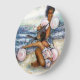 Original Painting of two girls playing with pink balloons on Coney Island Beach by New York City, Fine Art Artist, Gaye Elise Beda