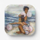 Original Painting of two girls playing with pink balloons on Coney Island Beach by New York City, Fine Art Artist, Gaye Elise Beda