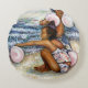 Original Painting of two girls playing with pink balloons on Coney Island Beach by New York City, Fine Art Artist, Gaye Elise Beda