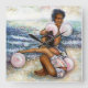 Original Painting of two girls playing with pink balloons on Coney Island Beach by New York City, Fine Art Artist, Gaye Elise Beda