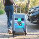 The stick looks amazing. Unfortunately, it would not stick on our suitcase as it was textured. When we found a non-textured (smooth) suitcase, the sticker stuck and looks great. The printing looked awesome.