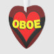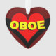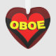 Oboe text over a red and black heart is a bold oboe design and a fun gift for oboe musicians, teachers and music lovers.