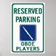 Reserved parking sign for oboists. Available spelled the REAL way (hautbois) or the common way (oboe).