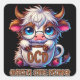 A funny and sarcastic colorful design showcases an adorable highland cow sitting with a steaming coffee mug labeled "O C D." The cow, with big blue eyes, glasses, and a concerned expression, sports brown and white fur. The vibrant text reads, "Obsessive Coffee Disorder." This quirky design is available on a wide range of products, making perfect gifts for coffee enthusiasts.