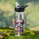 The bottle looks even better in real life. The ice cubes I put in lasts all day! I have my bottle with me all the time. It's summer and having something cold to drink feels amazing. With this bottle I always have something super cold. I have only tried the hot drink once and it lasted a long time as well. The color blue is a navy blue and the white printed on it is vibrant. It printed perfectly. I love my personalized smile water bottle.