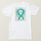 Obsessive-Compulsive Disorder (OCD) awareness uses a teal ribbon for its cause awareness. The shirt art features a teal awareness ribbon angel painting. The awareness angel t-shirt message notes "OCD Awareness". There is a large image on the back of the shirt and a smaller picture on the front of the shirt. The teal awareness angel ribbon art apparel can be customised with personalised messages to make great cause event clothing for fundraiser shirts, group team walk shirts, awareness t-shirt gifts, or other special cause events occasions for merchandise to help increase this cause's awareness in public for society's help in creating help & cause change.