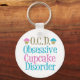 Yummy and pretty frosted light pink and blue cupcakes decorate this funny gift for someone with a sweet tooth. A cute keychain gift for a bakery. A little baker humor. Obsessive Cupcake Disorder keychains.