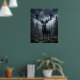 A magnificent obsidian stag stands tall in a dark forest clearing, its body formed from polished volcanic glass with layered mineral textures and dramatic black reflections. Towering crystalline antlers branch upward like sharp sculpted stone, creating a powerful noble silhouette. Wet pines, drifting fog, thundercloud skies, rain shimmer, and distant lightning glow build a cinematic wilderness atmosphere. Bold and unforgettable, this artwork is perfect for masculine interiors, gothic décor, lodge spaces, wildlife collectors, and statement walls with dark luxury energy.