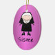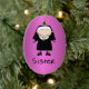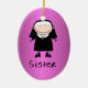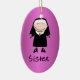 Professional woman in religious order with nun's habit on gleaming rosy raspberry purple background. Text on front reads Sister. Personalise the date or other saying on the back. A nice gift for Catholic school teachers. From Ornament Central.