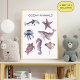 Discover a selection of hand drawn ocean animals with this beautifully illustrated poster! Perfect for classrooms, home-schooling, or decorating a child's room, this informative poster features a variety of animals in detailed illustrations and their names. Whether you're an educator, a parent, or an animal lover, this is a must-have addition to your space.