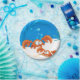 A graphic aquatic illustration of cute crabs on paper plates. ©2014charmainepaulson
