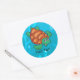 A graphic aquatic illustration of a cute turtle on a custom sticker. ©2014charmainepaulson