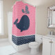 Ocean Aquatic Whale Chevron Stripes Pink and Navy Shower Curtain