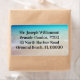 Ocean and sand background shipping label with text template. Add four or five lines of printed, black text to tropical themed labels.
