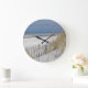 Pretty ocean beach with sand dune and weathered beach fence at Mayflower Beach on Cape Cod in autumn.