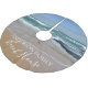 Add personalised style to your home with this beach-themed, personalised tree skirt perfect for your beach house. The design features a tranquil photograph of the blue and white waves, blue skies and golden sand of coastal Melbourne, in Australia. The modern, white text is customisable so you can add your own family name.