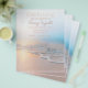 This funeral memorial flyer features a gorgeous beach scene with an ocean wave. The colours are light beach, creams and blues showcasing a calming shoreline and a beautiful sunset. Easily edit with your own details. You can even edit the colours of the font. Message me if you need any matching items.