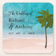 Ocean Beach Palm Tree Wedding Square Paper Coaster